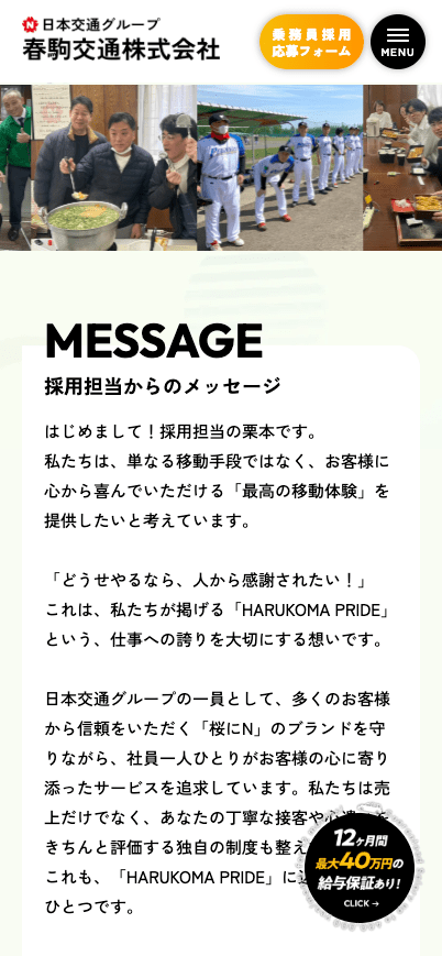 これらのポイントを通じて、「春駒交通で働くことの楽しさ」が伝わる、個性が際立つWebサイトを実現しました。