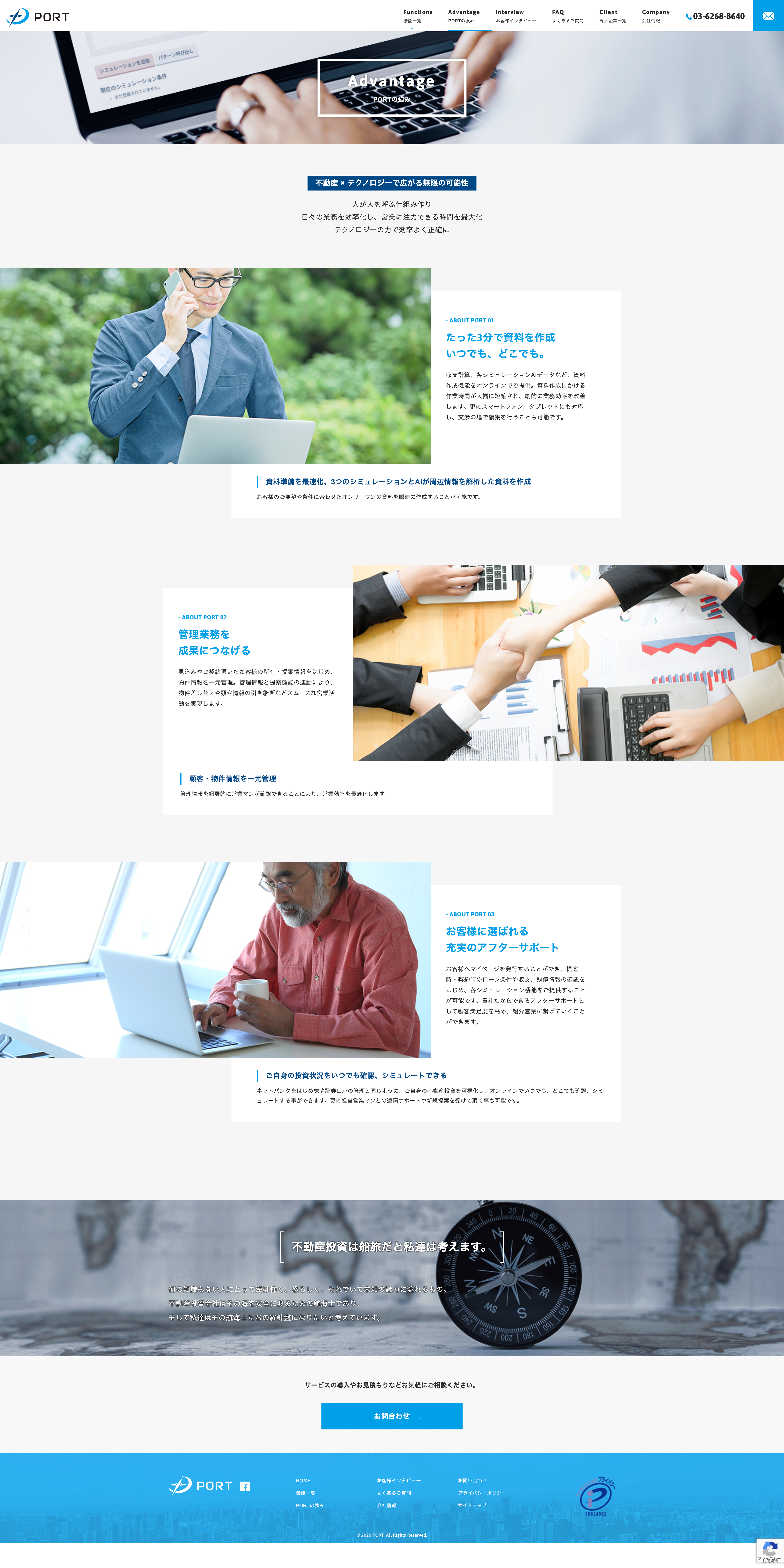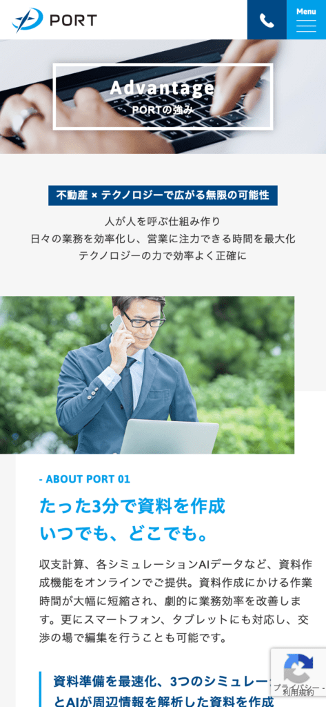 PORT様が取り扱っています不動産テックサービスを多くの人に理解してもらうために、見やすさとわかりやすさを意識して制作しました。