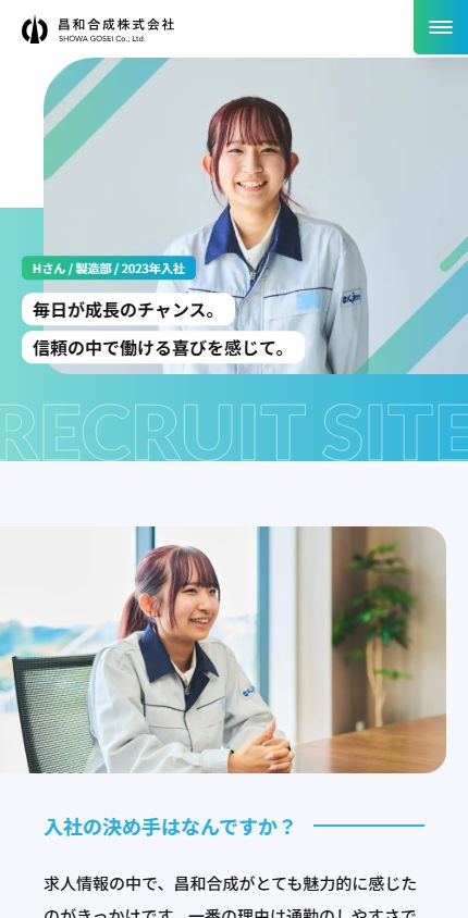 昌和合成採用TOPページデザイン